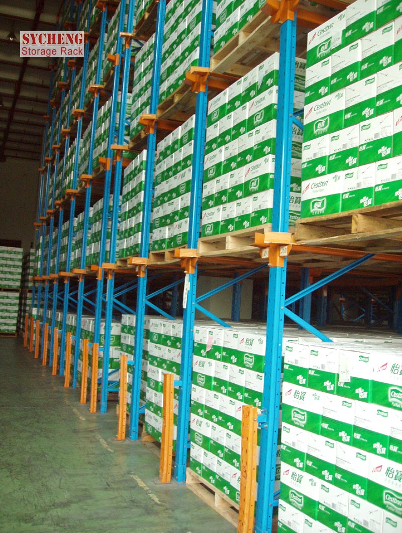 由于通廊式貨架存儲密度大,對地面空間利用率較高,使用于向深圳這種倉庫面積造價較貴的倉庫,與普通貨架相比,可以提高地面60%左右的使用率。僅需配套前移式叉車或平衡重式叉車即可使用非常適合那些貨品種類少但儲藏量大的倉儲應(yīng)用,常用在冷庫等存儲空間成本較高的地方。叉車可自由的進出于貨架之間的走廊從而使倉庫得到最大限度的利用。