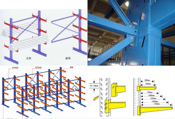 懸臂可以是單面或雙面,懸臂式貨架具有結構穩定,載重能力好、空間利用率高等特點。貨物存取由叉車、行車或人工進行。